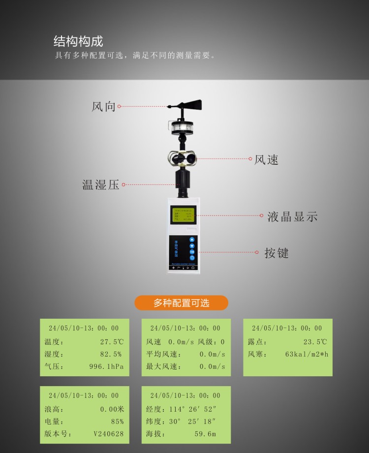 手持式氣象站是一款攜帶方便,操作簡單,集多項氣象要素于一體的可移動式氣象觀測儀器。系統(tǒng)采用精密傳感器及智能芯片,用于測量風(fēng)速,風(fēng)向、溫度,濕度,露點,大氣壓力,BF 薄福,風(fēng)寒指數(shù),海拔高度等數(shù)據(jù),并可擴展GPS定位功能。內(nèi)置大容量FLASH存儲芯片可存儲至少一年的氣象數(shù)據(jù);通用USB通訊接口,使用配套的USB線纜即可將數(shù)據(jù)下載到電腦,方便用戶對氣象數(shù)據(jù)的進一步處理分析。本儀器可用于農(nóng)林、環(huán)保、海洋、科學(xué)考察等領(lǐng)域。