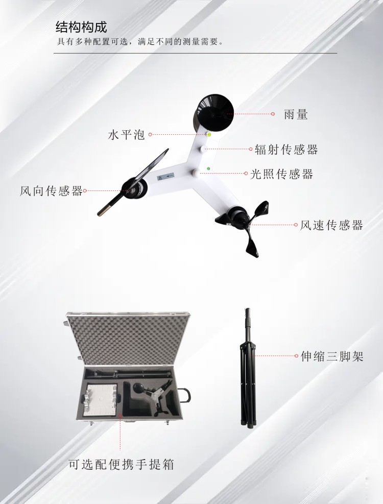FY-CQ200系列便攜式氣象站,可對(duì)風(fēng)速、風(fēng)向、溫度、濕度、氣壓、雨量、光照、紫外、輻射、PM2.5、PM10、噪聲等進(jìn)行同步測(cè)量。采用進(jìn)口傳感元件作為感應(yīng)部件,具有測(cè)量精度高、穩(wěn)定性好等特點(diǎn),傳感器采用先進(jìn)的電路集成模塊,可根據(jù)用戶的不同需求輸出RS232、RS485、4G等通訊方式傳輸。儀器體積小巧,安裝方便且便攜,性能可靠;可廣泛應(yīng)用于氣象觀測(cè)、環(huán)境控制、農(nóng)業(yè)、工廠等諸多領(lǐng)域。