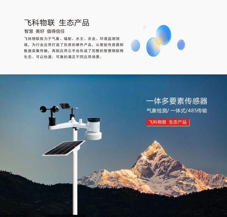 FY-QG系列一體式多要素傳感器,可對(duì)風(fēng)速、風(fēng)向、溫度、濕度、氣壓、雨量、光照、紫外、輻射、PM2.5、PM10、噪聲等進(jìn)行同步測(cè)量。采用進(jìn)口傳感元件作為感應(yīng)部件,具有測(cè)量精度高、穩(wěn)定性好等特點(diǎn),傳感器采用先進(jìn)的電路集成模塊,可根據(jù)用戶的不同需求輸出RS232、RS485、4G等通訊方式傳輸。儀器體積小巧,安裝方便且便攜,性能可靠;可廣泛應(yīng)用于氣象觀測(cè)、環(huán)境控制、農(nóng)業(yè)、工廠等諸多領(lǐng)域。