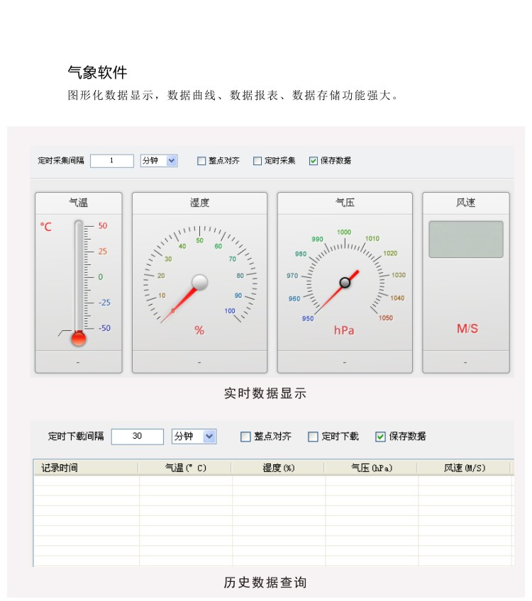 ●大容量數(shù)據(jù)存儲,最多可存儲90000條氣象數(shù)據(jù)(數(shù)據(jù)記錄間隔可在1~240分鐘之間設(shè)置);