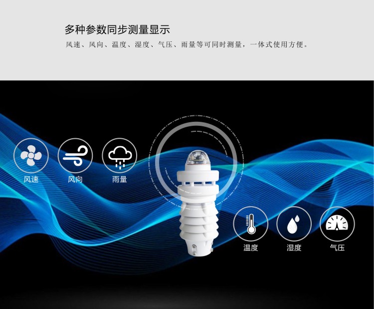 ●風速、風向、溫度、濕度、氣壓、雨量等一體式;