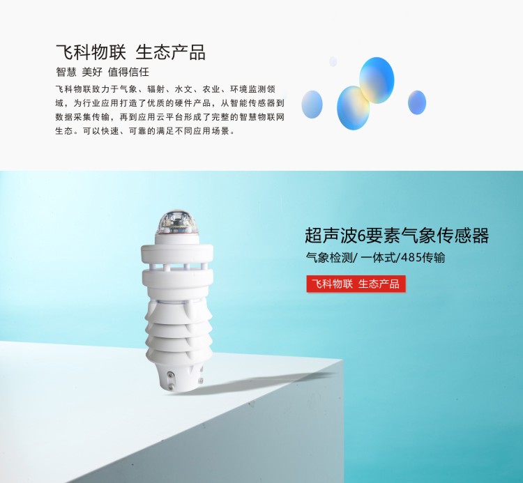 FY-QA600超聲波6要素傳感器采用超聲波原理,一體式結(jié)構(gòu)可對風速、風向、溫度、濕度、氣壓、雨量等進行同步測量。采用高精度傳感元件作為感應部件,具有測量精度高、穩(wěn)定性好等特點,傳感器采用先進的電路集成模塊,可根據(jù)用戶的不同需求輸出RS232、RS485、4G等通訊方式傳輸。儀器體積小巧,安裝方便且便攜,性能可靠;可廣泛應用于氣象觀測、環(huán)境控制、農(nóng)業(yè)、工廠等諸多領域。