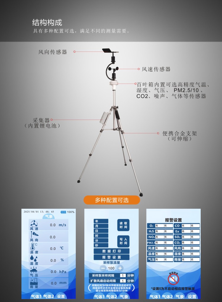 ?可同時監(jiān)測風速、風向、溫度、濕度、氣壓等氣象參數(shù);